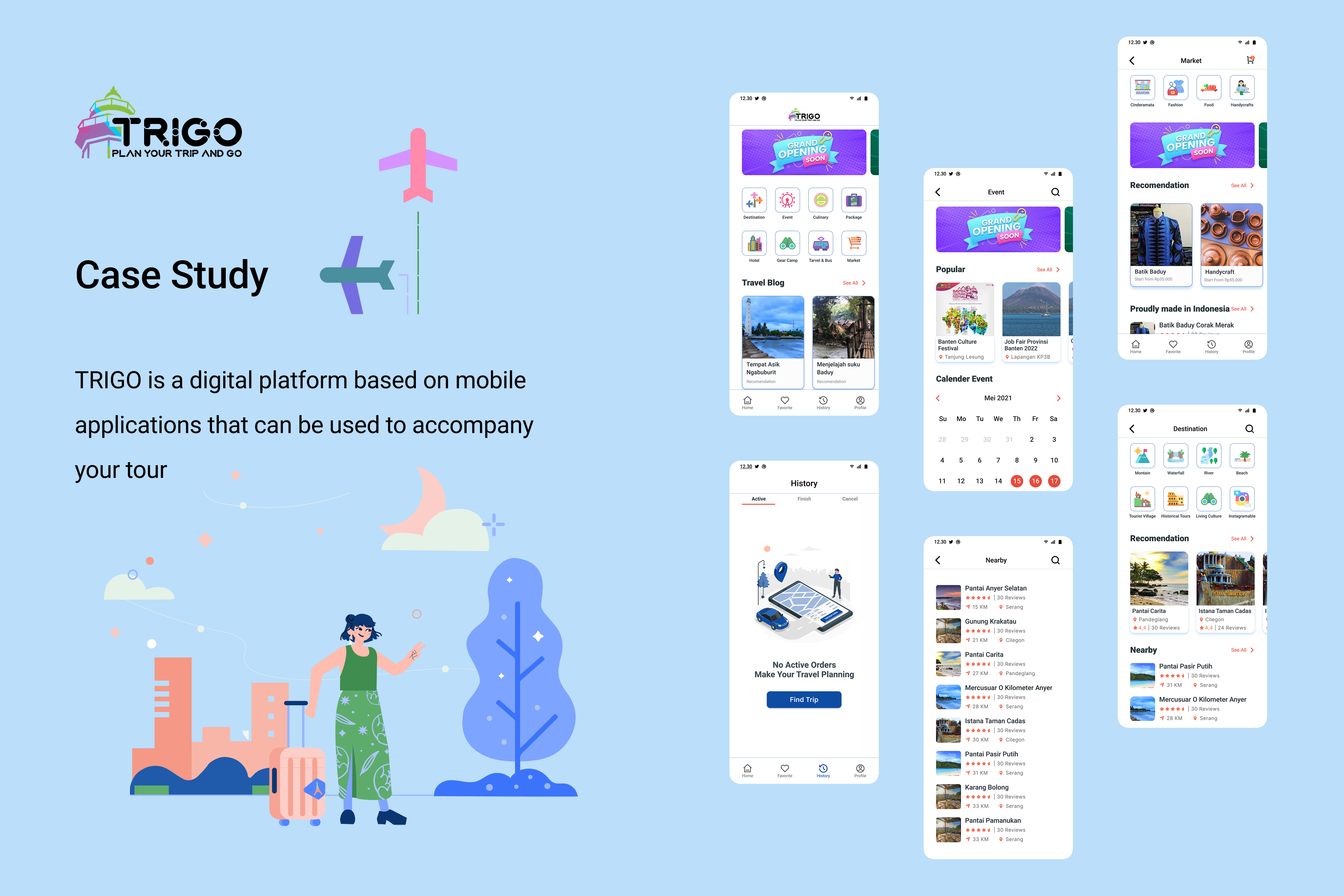 Trigo is my final project, where I was responsible for designing the user interface (UI) and user experience (UX) of the application. The process began with a comprehensive needs analysis, market research, and identification of target users, followed by usability testing to ensure an optimal user experience. I conducted a competitor analysis to benchmark features and user flows, then developed an information architecture to structure the content effectively. From there, I translated user flows into system design, created wireframes, and built high-fidelity interface designs. The tools I used throughout this project included Figma for UI/UX design, Adobe Illustrator for visual assets, and Maze for usability testing and user feedback.