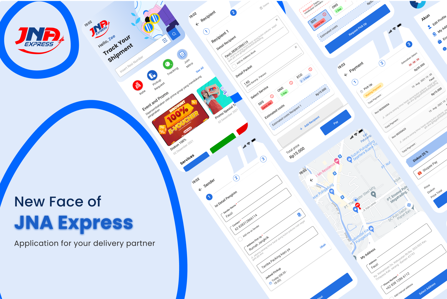 The redesign of the JNA Express Delivery app under PT Globalindo 21Express starts with a competitor analysis to understand market trends and user needs. Based on the findings, an information architecture is created to organize content and features clearly.